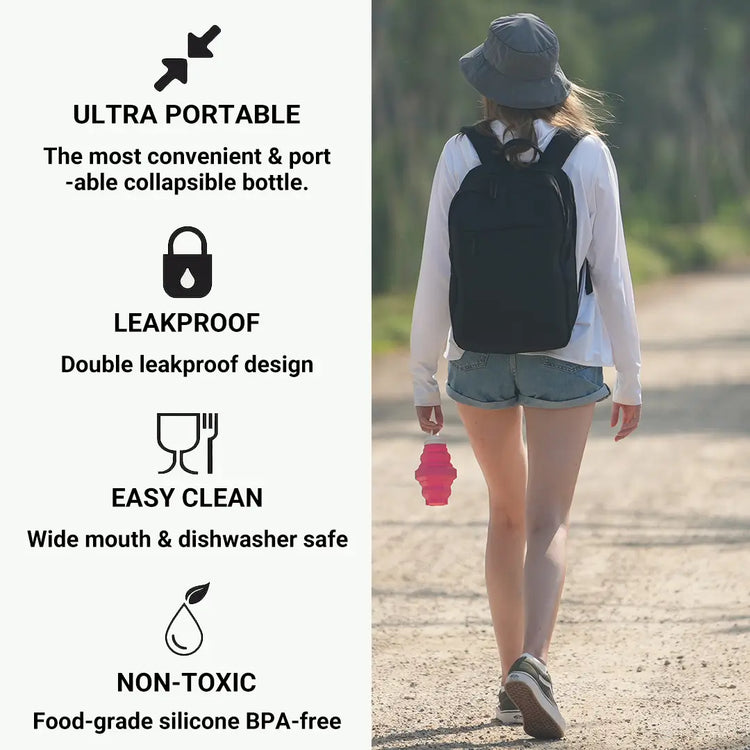 Designed with travel in mind, our bottle collapses down to a compact 1.8" disc and expands to hold a generous 19 ounces of water. Available in 4 colors, MEFOLD makes hydration as portable as you are!